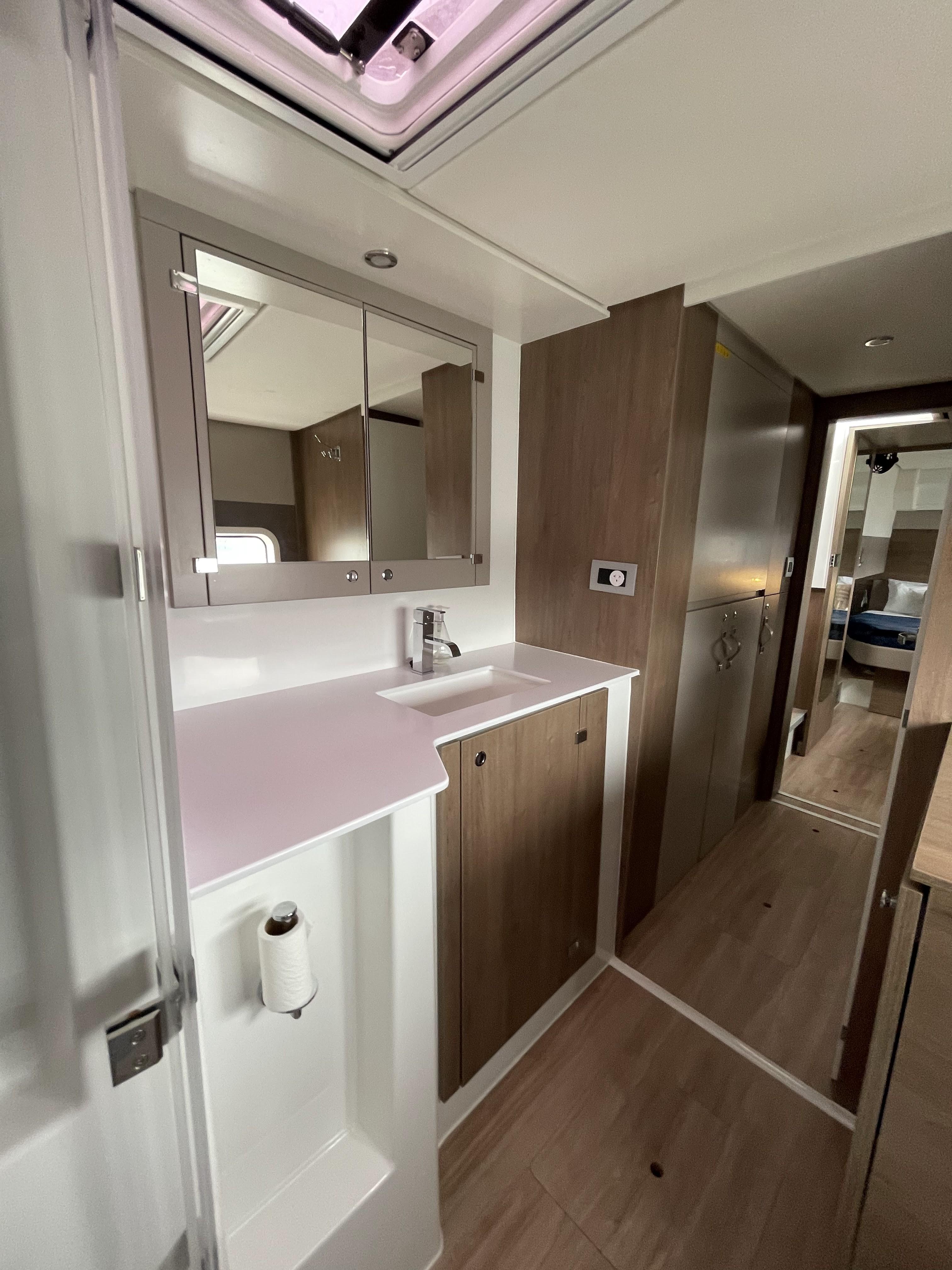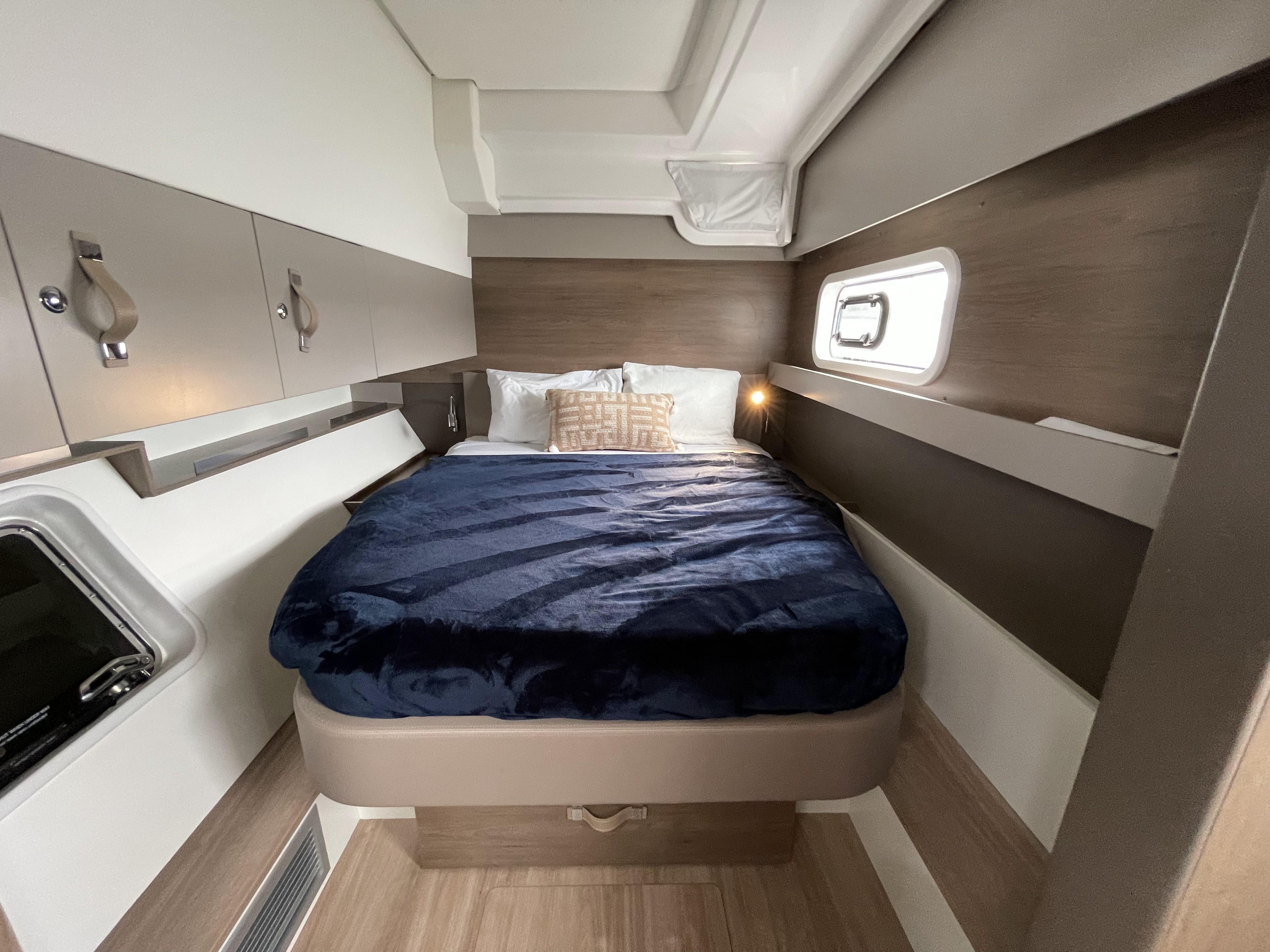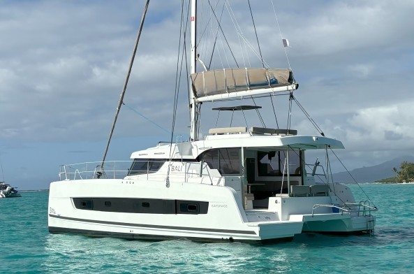 This Bali Catspace 4.0 is a 2023 model and offers 3 ensuite cabins with electric heads, generator, AC, full-size fridge, water maker, and more!